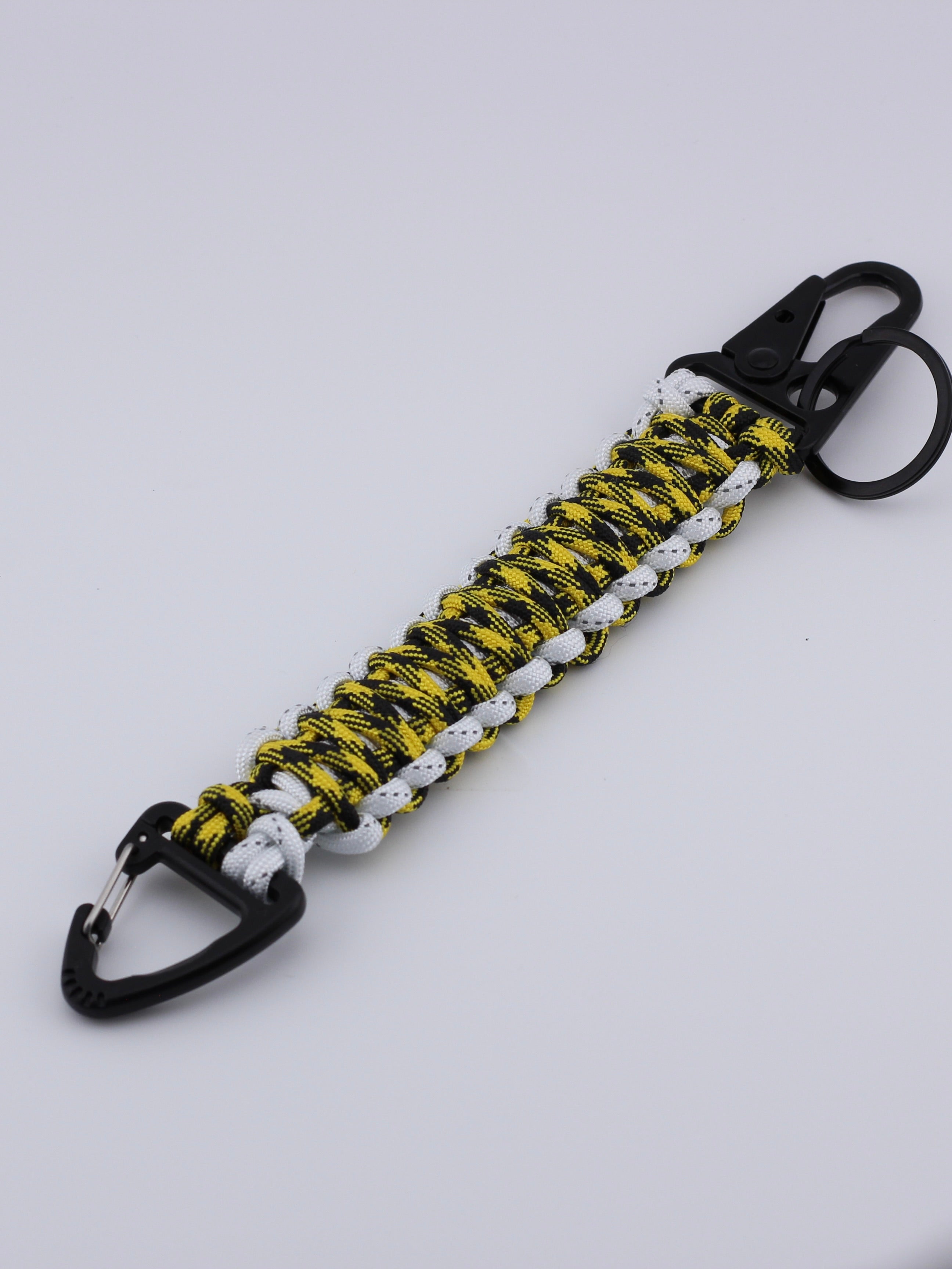 This is a standard King Cobra (double Cobra) weave keychain, measures 6in in length and totals 12ft of paracord.  Also features a heavy duty HK style carabiner and on the other end a 2in triangle carabiner.  Can be made in 1 or 2 colors in various sizes.  Pick your favorite sports team or school colors, or show off your creativity with your own color combinations.