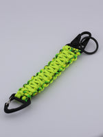 This is a standard King Cobra (double Cobra) weave keychain, measures 6in in length and totals 12ft of paracord.  Also features a heavy duty HK style carabiner and on the other end a 2in triangle carabiner.  Can be made in 1 or 2 colors in various sizes.  Pick your favorite sports team or school colors, or show off your creativity with your own color combinations.